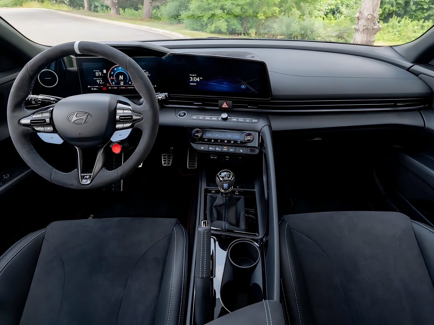इंटीरियर के संदर्भ में, नई कार का समग्र लेआउट एलांट्रा एन से बहुत अलग नहीं है, लेकिन यह 12 बजे की स्थिति मार्कर के साथ "एन परफॉर्मेंस" अलकेन्टारा स्टीयरिंग व्हील से सुसज्जित है। इस बीच, सामने की पंक्ति नीले सीटबेल्ट से सुसज्जित है, दरवाजे की सिल पर एन परफॉर्मेंस मेटल सिल गार्ड लगाए गए हैं, और कार में एन परफॉर्मेंस फ्लोर मैट के साथ-साथ बड़ी संख्या में अलकेन्टारा इंटीरियर किट भी हैं। उदाहरण के लिए, मैनुअल पार्किंग ब्रेक लीवर, गियर शिफ्ट लीवर और आर्मरेस्ट बॉक्स आर्मरेस्ट को अलकेन्टारा में लपेटा गया है। अंत में, दरवाज़े के हैंडल की लाइट पर एक "TCR संस्करण" लोगो है, जो भावनात्मक अपील से भरा है।